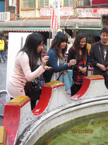 我們三個瘋狂掏錢丟水池的鐘和碗 丟中好像是可以保平安 我們卯起勁來丟 不過是用一塊錢丟