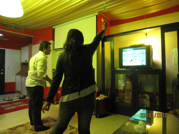 離開之後我們就到85大樓民宿去放行李 順便完一下wii