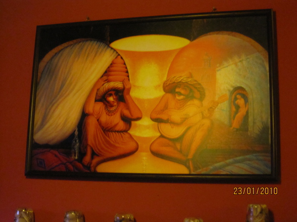 這是店內牆上的某一幅畫 很特別喔 不同的角度可以看到不同的畫 遠看左邊是老婆婆 右邊是老公公